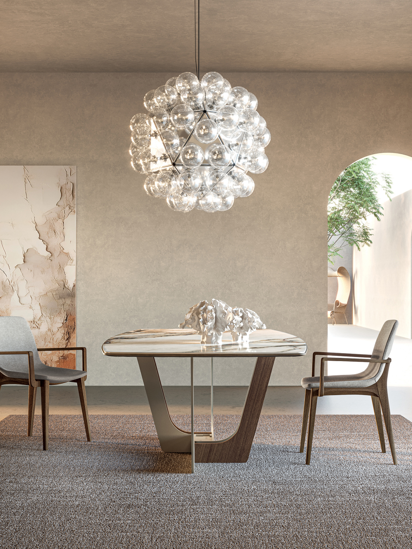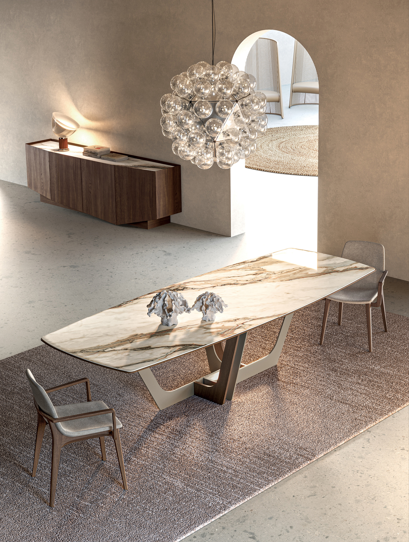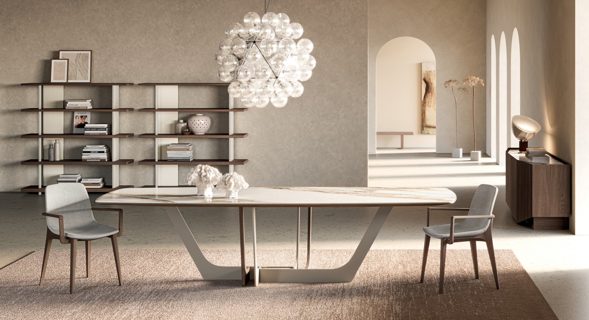 Para una mesa de diseño que combina grandeza y distinción,