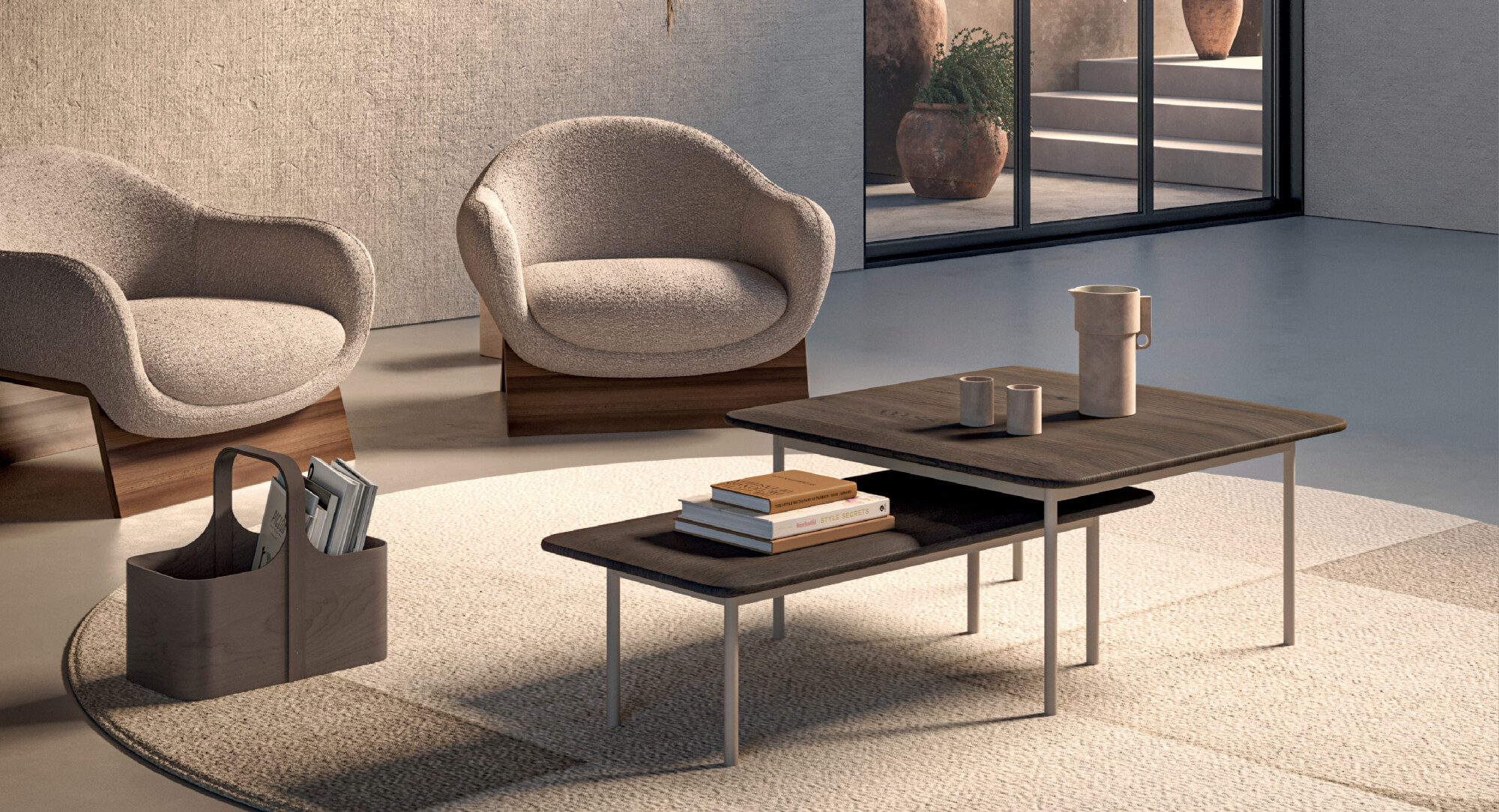 La coppia di tavolini Drop supera la sua funzione di appoggio,